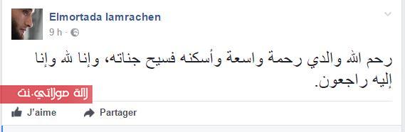 وكتب إعمراشا في تدوينته: “رحم الله والدي رحمة واسعة وأسكنه فسيح جناته، وإنا لله وإنا إليه راجعون”.