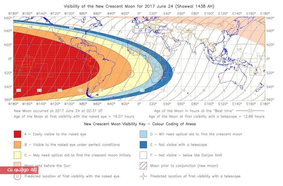 كشفت تقارير دولية أن الحسابات الفلكية بخصوص هلال شهر شوال لعام 1438 أظهرت أن كل من أمريكا الجنوبية والمكسيك وروسيا والدول الإسكندنافية سيتم فيها مراقبة الهلال بالعين المجردة يومه السبت حيث ستكون واضحة.