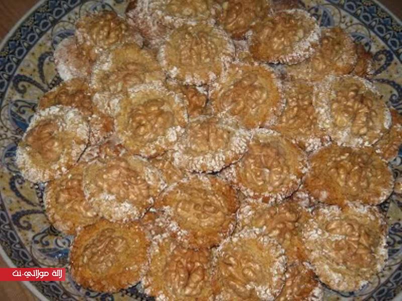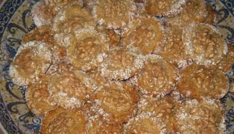 يطحن الجوز واللوز على شكل مسحوق نضيف السكر ثم الخميرة والمربى ،. وينبغي أن يكون العجين لزج قليلا. يترك ليرتاح لمدة نصف ساعة في الثلاجة حتى يبرد جيدا.