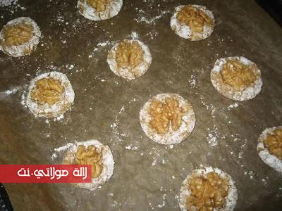 ثم نعمل منه كويرات ، نمررهم في سكر وتزين بنصف كركاعة.