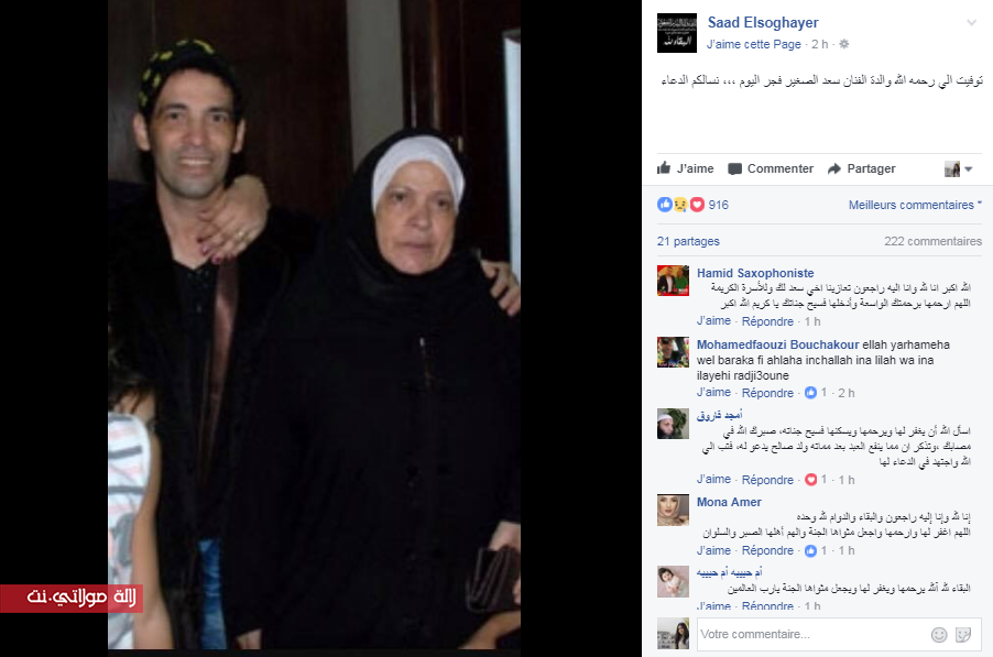 أعلن المطرب الشعبي المصري سعد الصغير ببالغ الحزن والأسى عن وفاة والدته.