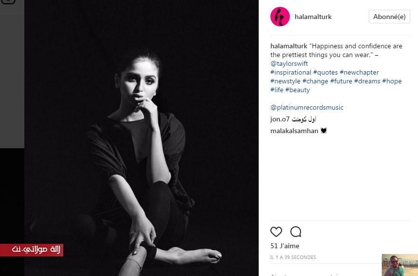 ويعد الفنان المغربي عبد الفتاح الجريني المغربي الوحيد الذي ضمته حلا لقائمة أصدقائها عبر حسابها الرسمي الجديد على إنستغرام.
