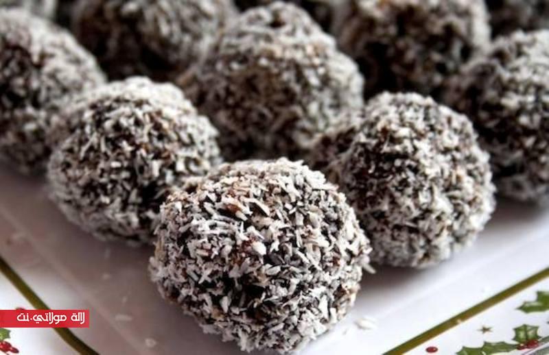 بعد ذلك شكلي كرات متوسطة الحجم اغطسيها في بياض البيض ثم لفيها بجوز الهند و ادخليها الفرن على درجة حرارة متوسطة لمدة 15 دقيقة .
