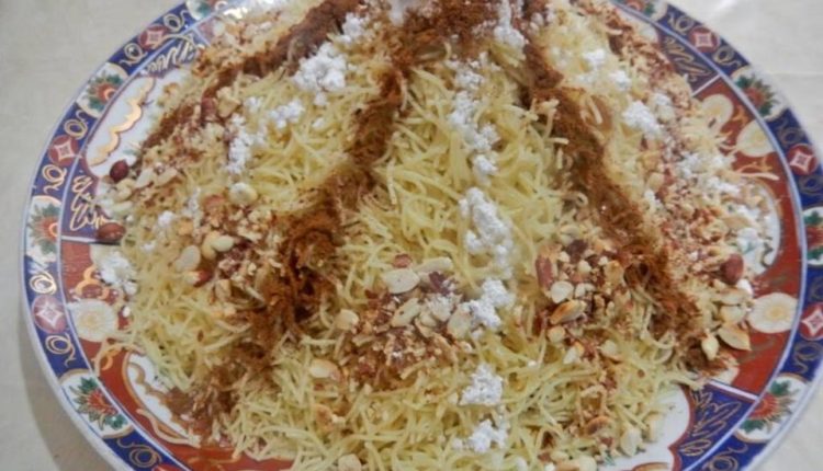 بعد ذلك تزال من المصفاة و توضع الشعرية في صحن و تنرش بالماء والملح، وتخلط جيدا باليد.