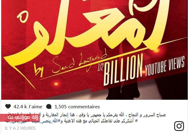 و يتعلق الأمر بالنجاح الذي حققته أغنية و فيديو كليب “لمعلم” الذي فاق نصف بليون مشاهدة على قناة اليوتيوب