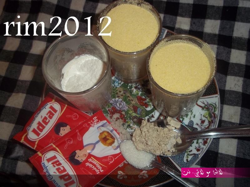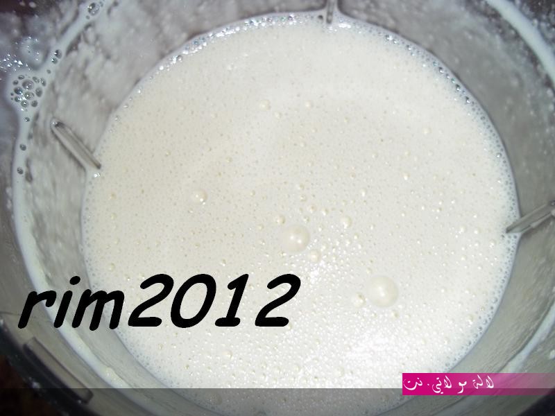 نعملو كلشي في الخلاط ما عدى الخمارات ونخدمو 5د ثم نضيفو الخمارات ونواصلو الخفق 2د اخرين وهاهو واجد