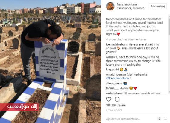وعلق الفنان على الصورة التي يقبل فيها قبر جدته المتوفاة عام 1988 قائلا: « لا يمكنني أن أزور المغرب دون أن آتي لأترحم عليكِ، عائلتي تحضنني لأستنشق رائحتك »