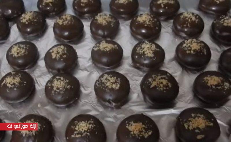 بعدها قومي بتشكيل العجين إلى كويرات واضغطي عليها قليلا و أدخليها إلى الفرن ثم بعدها اغمريها في الشوكولاتة وزينيها بالكاوكاو المطحون .