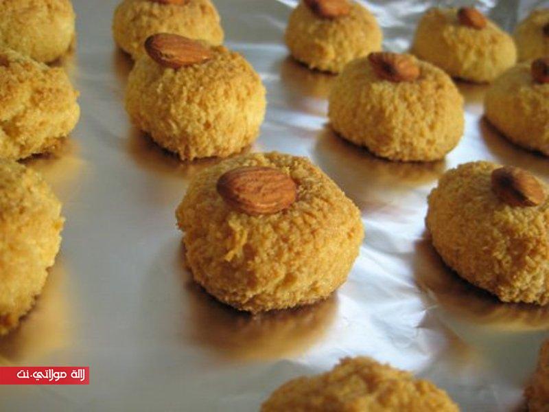 يمكن وضع كاجو أو فستق بدلاً منه و يمكن تركه بدون تزيين …ثم يوضع في الفرن حتى يحمر .