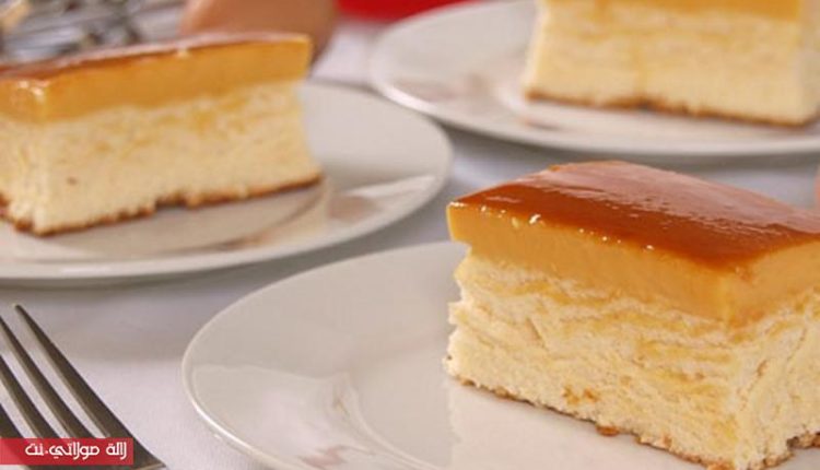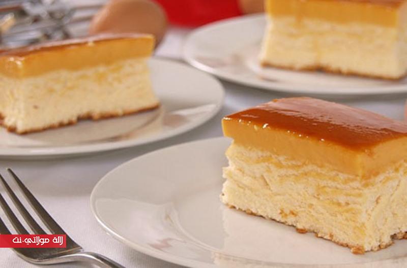 – يترك القالب لمدة 5 دقائق خارج الفرن ثم يقلب في صحن التقديم، لا يجب أن يترك ليبرد داخل القالب لأن الكراميل سيلتصق في القالب.