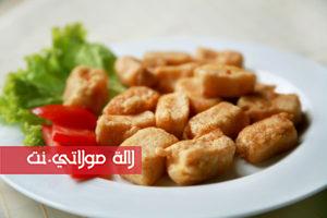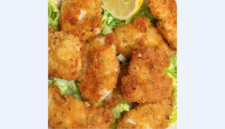 4. اغمسي قطع الدجاج في مزيج زيت الزيتون والثوم ثم اغمسيه في طبق البقسماط والجبن البارميزان.