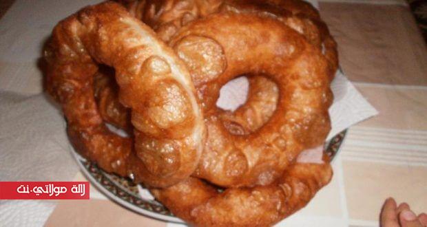 5 يسخن الزيت في مقلات ونشكلها في الايدي على شكل حلقة ثم نضعها برفق في الزيت ونقلبها حتى تتحمر من كلا الجهتين.
