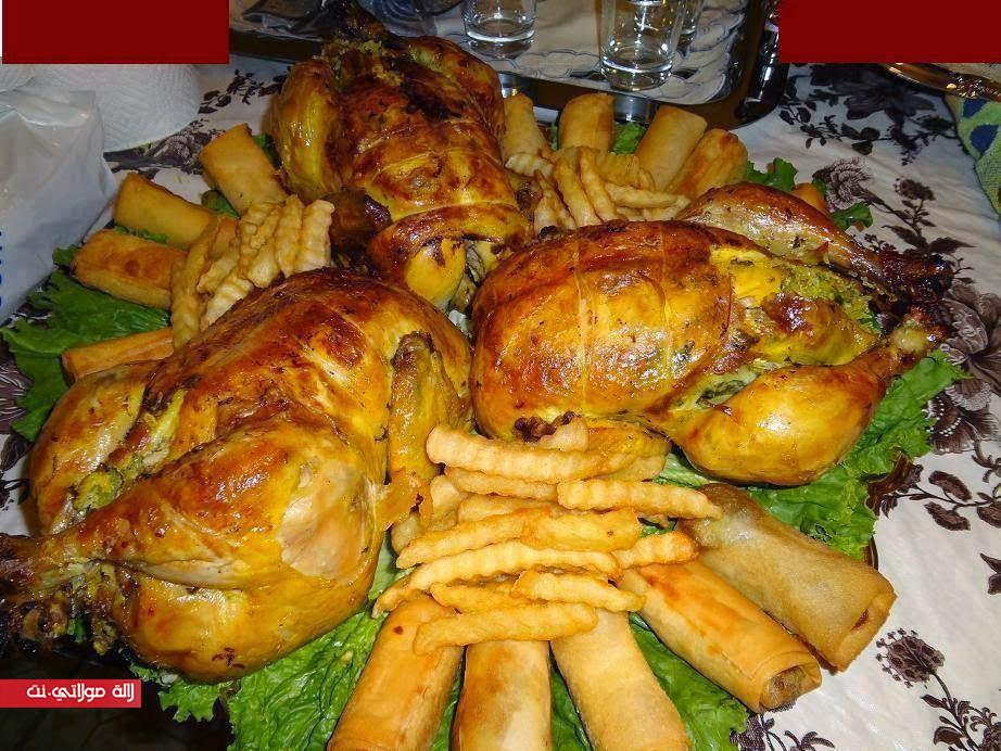 وشوية الموطارد وكنور الدجاج محكوك وندخلو الدجاج الفرن حتى يتحمر
