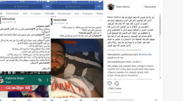 تعرضت الممثلة و مقدمة برنامج “لالة لعروسة” فاطمة خير لعملية النصب من طرف أشخاص قامو باستغلال اسمها من خلال إنشاء صفحات على موقع فايسبوك بغرض جمع المال لمساعدة الفنان أمين تمري المشهور “بأمينوكس” وإجراء عملية جراحية مستعجلة.و نشرت فاطمة صورا على موقع تحميل الصور و الفيديوهات”انستغرام” و دونت عليها قائلة : “حسبي الله ونعم الوكيل في هاد الناس اللي كيتاجرو بأعراض الناس، وكيستغلو إسمي في النصب والابتزاز على عباد الله، بحال هاد المرضى المجردين من الأخلاق ومن الضمير اللي دايرين هاد الحساب المزور و يتكلمو باسمي واش ما كتحشموش؟ واش ما كتخافوش من الباطل اللي عايشين فيه؟”، موضحة أنه لم تربط اي اتصال بأمينوكس، ولم تتوصل منه بأي رسالة.