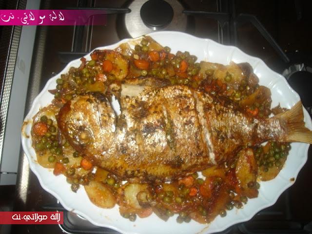 حوتة معمرة و مشوية فالفران مرفوقة بالخضر مبخرة