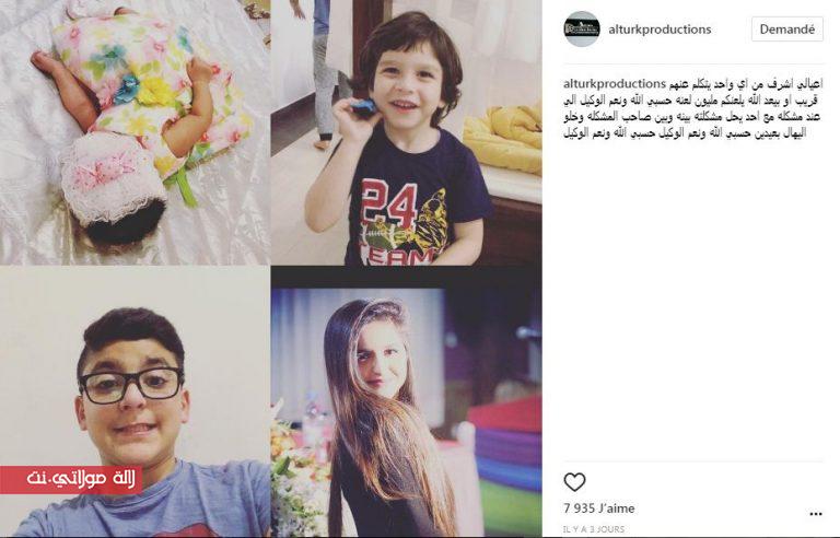 نشر المنتج البحريني محمد الترك على حسابه الرسمي بموقع “انستغرام” صورا لأبناءه الأربعة بما فيهم “غزل” طفلة دنيا بطمة، ووجه رسالة قاسية لكل من يسيء إلى أطفاله بكلماتهم الجارحة.كتب الترك في رسالته “عيالي اشرف من اي واحد يتكلم عنهم قريب او بيعد الله يلعنكم مليون لعنه حسبي الله ونعم الوكيل الي عند مشكله مع احد يحل مشكلته بينه وبين صاحب المشكله وخلو اليهال بعيدين حسبي الله ونعم الوكيل حسبي الله ونعم الوكيل”.