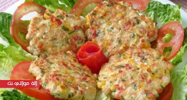 قومي بوضع البيض في وعاء وطربيه قليلا ، ثم ضيفي له الياغورت والقليل من الملح والابزار ثم اخلطي الكل وضيفي بعدها الدجاج مقطع قطع صغيرة وامزجي الكل جيدا ثم ضيفي البقدونس المقطع واخلطي ثم ضيفي البصل المقطع قطع صغيرة واخلطي ثم ضيفي الدقيق واخلطي الكل ثم ضيفي بعدها الفلفل مقطع قطع صغيرة والذرة المعلبة واخلطي الكل جيدا .