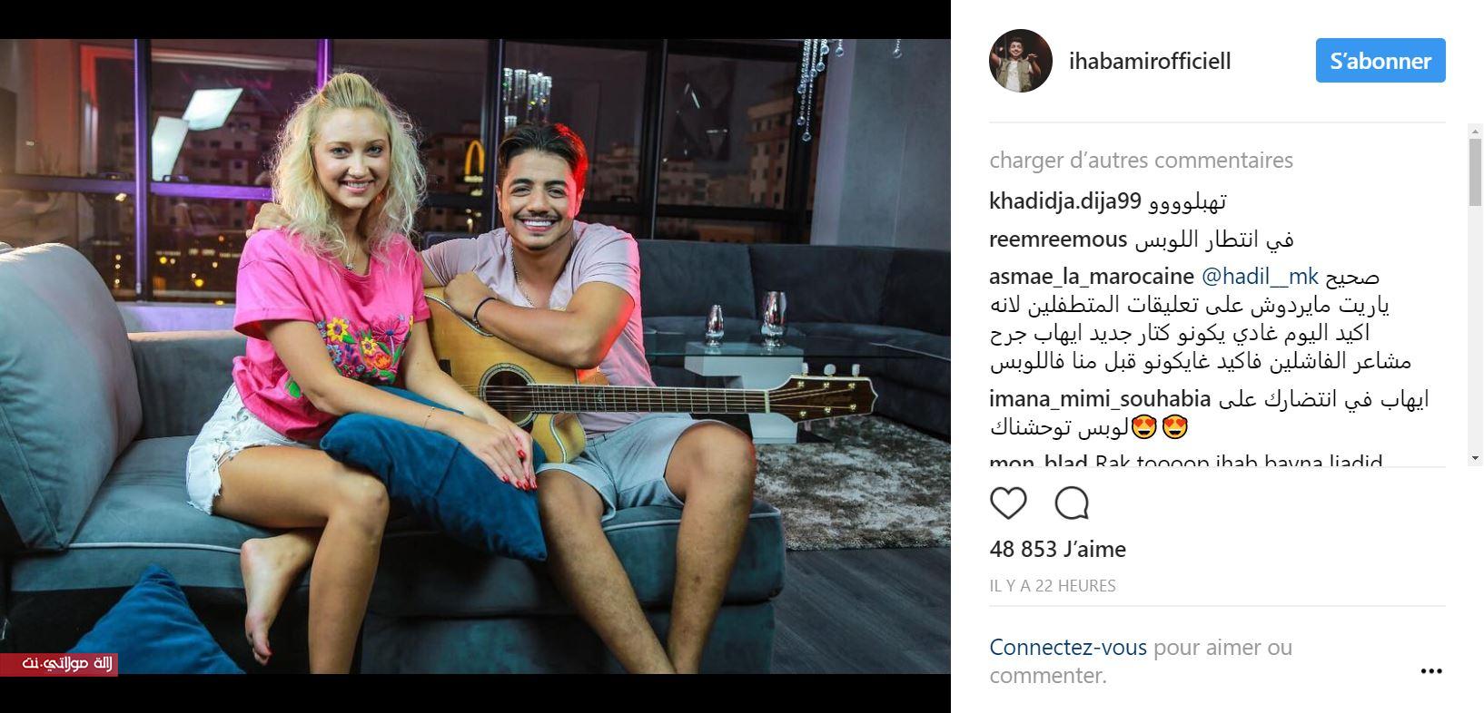 نشر الفنان المغربي الصاعد إيهاب أمير على حسابه بالاسنتغرام صورة جديدة له جمعته بفتاة شقراء جميلة، دون أن يكشف عن هوية هذه الفتاة.