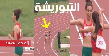 المغربية فدوى سيدي مدان ”ضربات الدورة على متسابقة في سباق 3000 متر وتفوز بالميدالية الذهبية (شاهد رد فعل المعلق الفرنسي)