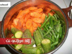 خذيت خضر مشكلة فورتها (خيزو+كورجيط+لوبيا يمكن ديري أي خضر عندك فالثلاجة) مني كاطيب الخضر نديرو شوية الثومة وزبدة ومعدنوس+ملح+إبزار فالمقلة ونسوطيو فيها الخضر كل نوع بوحديتو مني نبغيو نطفيو على الخضر نضيفو ملعقة صغيرة عصير حامض(كاندير هد الطريقة حتى البيض مصلوق كايجي بنين)
