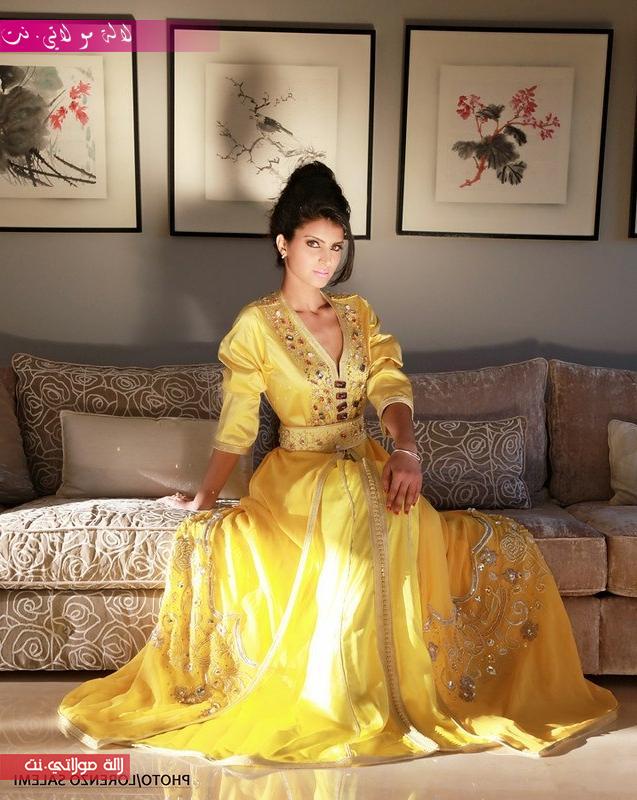 القفطان المغربي للمناسبات و الاعراس باللون الاصفر والذهبي