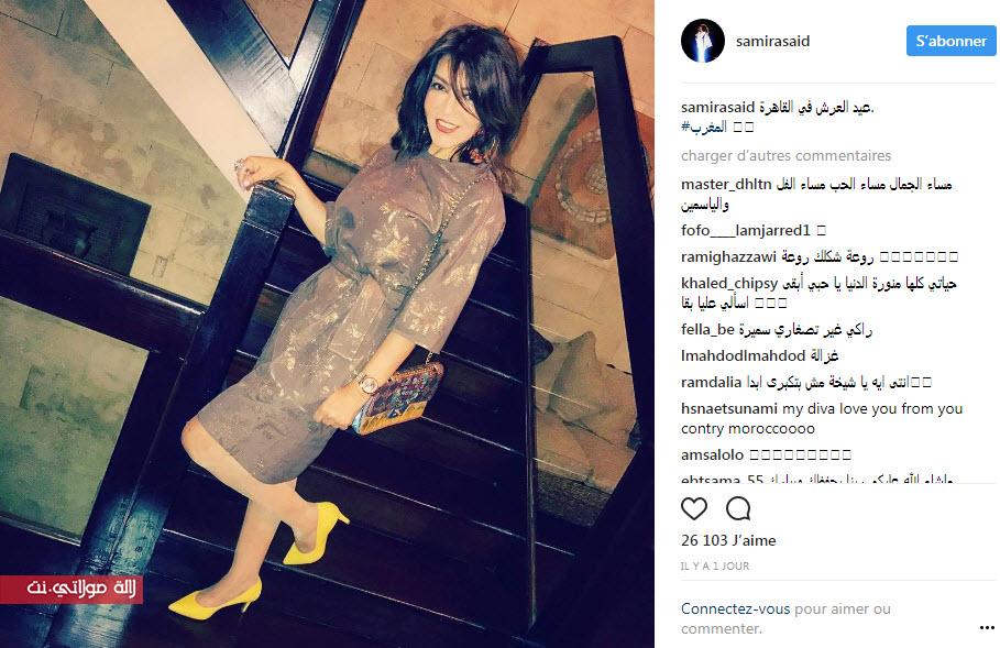 نشرت سميرة صورة جديدة لها عبر حسابها على موقع (الانستغرام)، وعلّقت قائلة: “عيد العرش في القاهرة”.1
