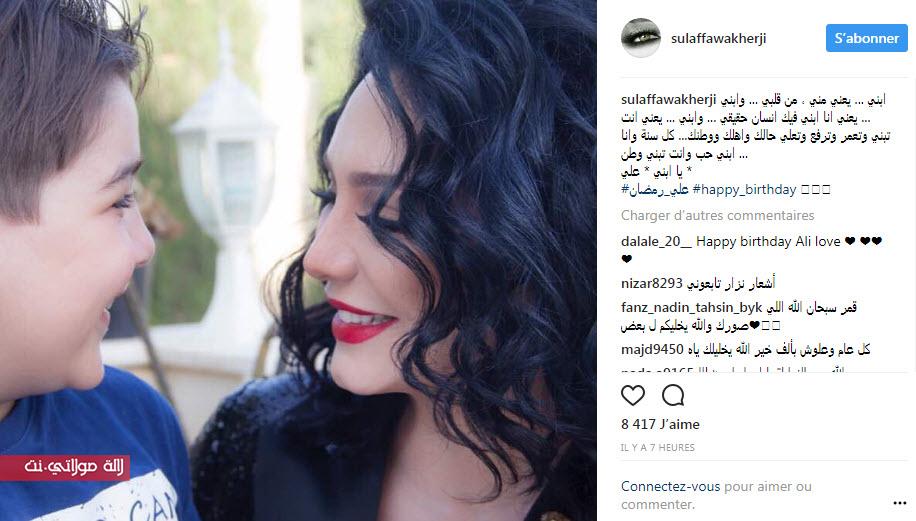 نشرت سلاف صورة لها معه، وأرفقتها برسالة جاء فيها: “ابني يعني مني من قلبي.. وابني يعني انا ابني فيك إنسان حقيقي”.