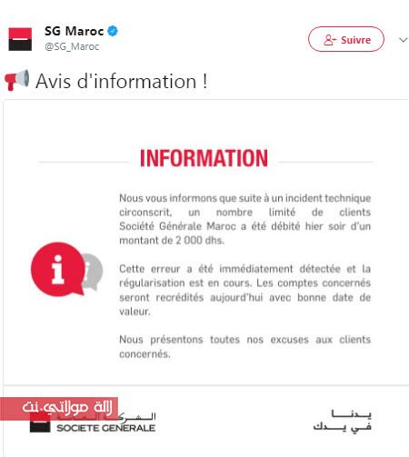 “الشركة العامة المغربية للأبناك” تخرج ببلاغ هام بعد اقتطاع مبلغ 2000 درهم من حسابات زبناء