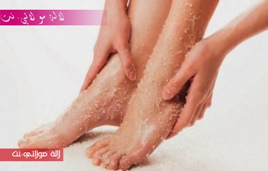 نقع القدمين لمدة 20 دقيقة مع التدليك بلطف بهذه العجينة .