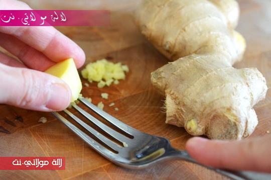 نأخذ مقدار ربع كف اليد من الزنجبيل المبشور