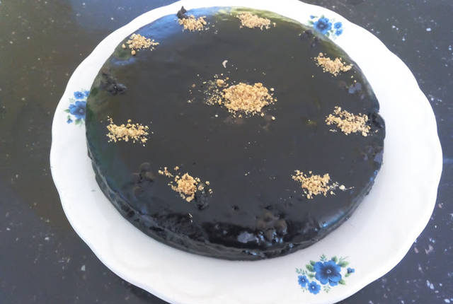 توضع في القالب مدهون و مباشرة للفرن عملت صوص شوكولا بمكونات بسيطة وهي فنجان حليب+فنجان سكر+فنجان كاكاو و خلط بالخلاط و ضف عليه فنجان زيت مع الخلط و تصير جاهزة اطلي كامل الوجه بعدما تبرد.