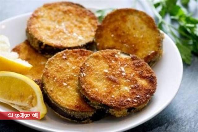 – ضعي شرائح الباذنجان في البقسماط ثم في البيض.