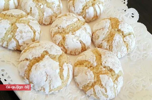 نخرج الغريبة من الفرن و نزيلها من الصينية ثم نضعها في طبق التقديم.