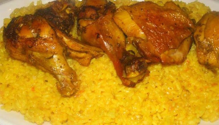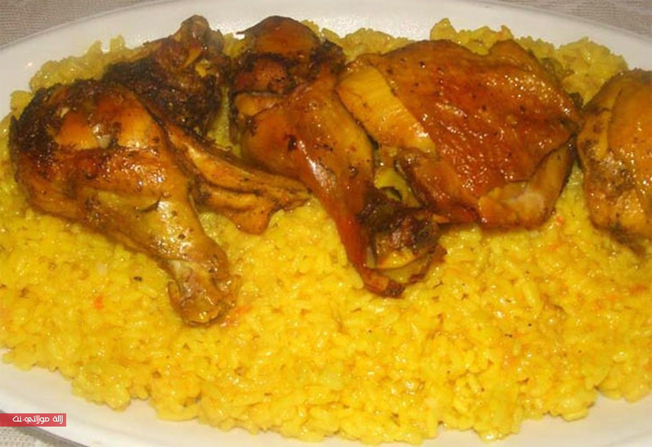 نقدمو الروز نزلو فوقو دجاج والبصلة لي حمرنا في الزبدة ونزينوه باللوز