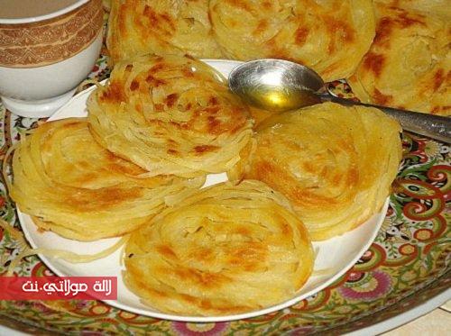 - باستخدام الشوبك نقوم بتجميع خيطان العجينة ولفها على الشوبك لتصبح لولبية الشكل