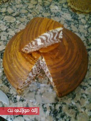 نخلطوا المقادير ونقسموا الخليط نتركوا الخليط الاول أبيض و نخدوا الخليط الثاني نضيفوا له الكاكاو غبرة
