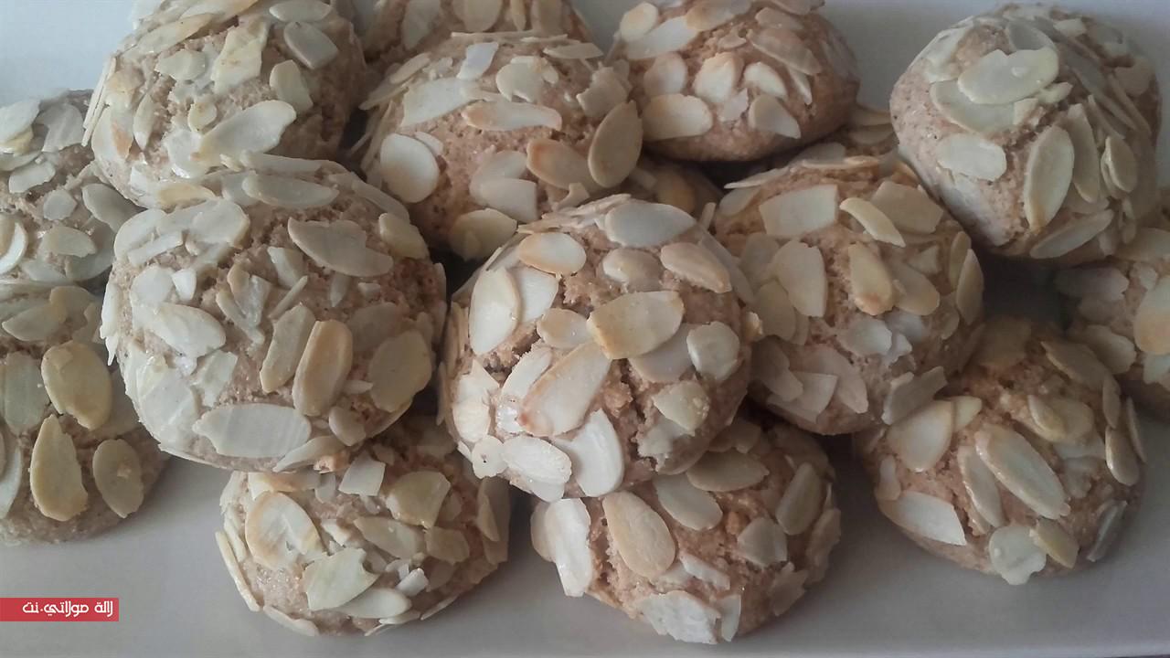 - نعمل كويرات صغار من العجين نغطس وجههم فاللوز إفيلي أو الزنجلان أو السكر كلاصي وندخلها للفران.
