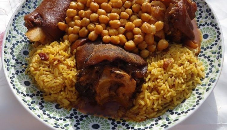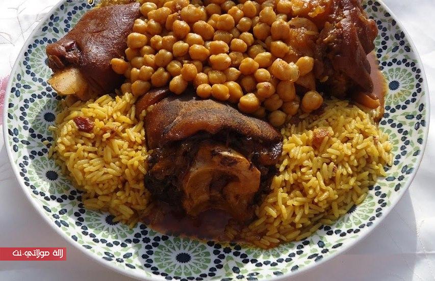 من بعد ما يطيب نضعه في طبق التقديم و نوضعو القطع ديال الكرعين ثم الصلصة من الفوق