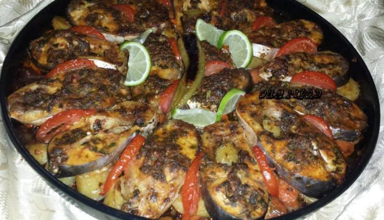نستف الحوت و نستف مطيشة و فلفلة حارة و ندخلوهم للفرن