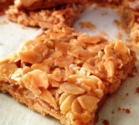 نكرص العجين في لاطة مدهونة بالزيت رقيق وندهنها بالكونفتير أي نوع يكون جاري ونرش اللوز او الكاوكاو ايفلي وندخلها الفران. مللي تخرج نقطعها مربعات.