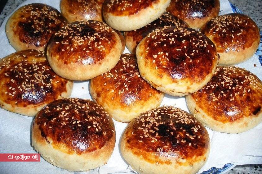 ثم نحضر كويرات ونحطها في طاوة مدهونة بزيت ونخليها تخمر ويضاعف حجم كويرات وندهنهم بصفار البيض ورش بسنيدة من فوق وندخلها الفران وتقدم بالصحة.