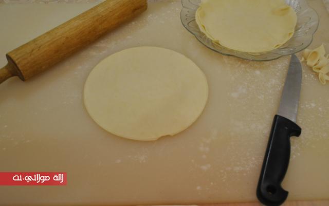 يمكن مراعات تشكل العجينة اثناء الفرد وملاحظة الشكل الدائري .. او تشكيلها بعد الفرد بشكل دائري او وضع طبق بالحجم المناسب وقطع العجينة بحجمه ..