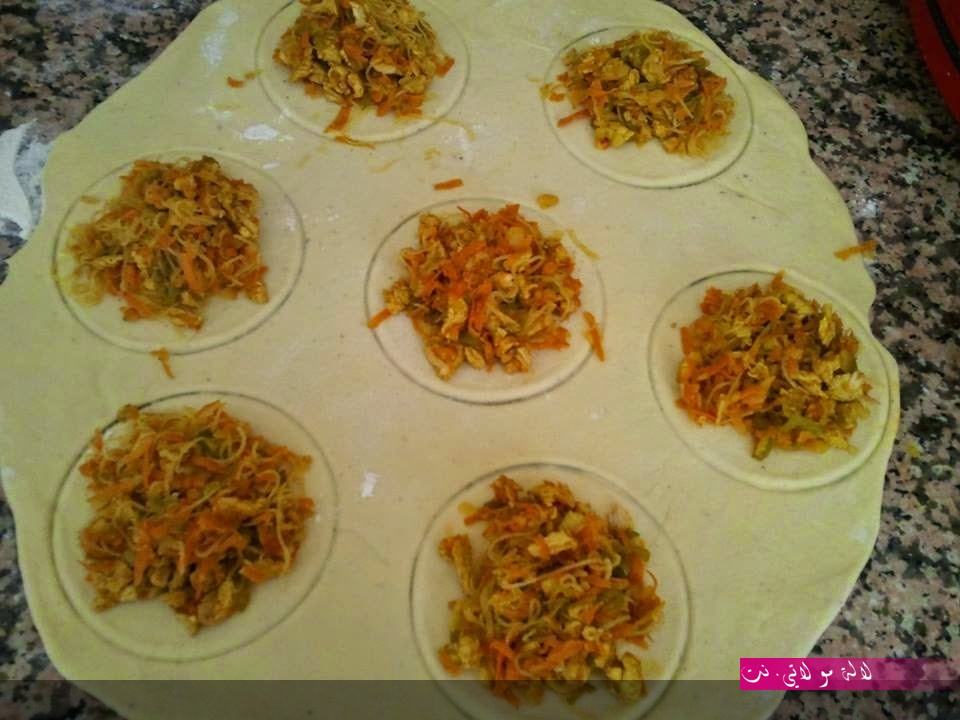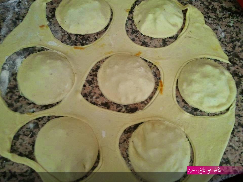 نعجن العجين ونتركها ترتاح ونحضر الحشوة ونتركها تبرد والطريقة فالصورة