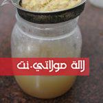 - والأن تصفية الزنجبيل بمصفأة للحصول علي ماء الزنجبيل الصافي .