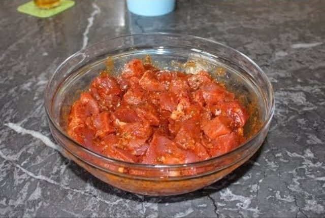 في وعاء ضعي جميع التوابل والأعشاب المذكورة أعلاه وامزجي الكل جيدا ثم ضيفي الزيت والموطارد والخل والصلصة الحارة وصلصة الشواء واخلطي العناصر جيدا ثم خودي منه قليلا واحتفظي به جانبا لدهن اللحم أثناء شوائه أو مرافقته بعد استوائه ، ثم ضيفي البصل للخليط الاخر واخلطي الكل ثم افرغي اللحم فيها واتركيها تترقد ثم اشوي اللحم بعدها .