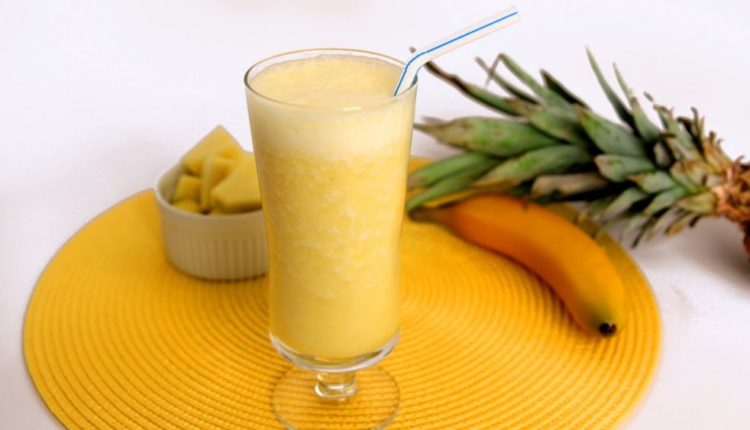 3- ضعي سموزي الموز بالأناناس في أكواب التقديم.