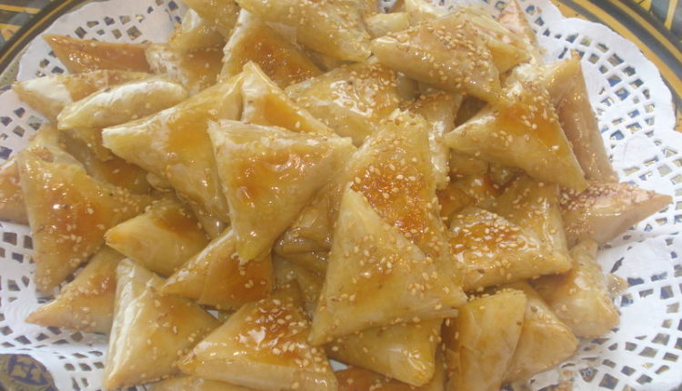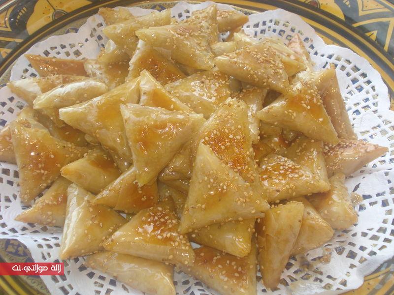 نقوم بإضافة الحليب المركز والمحلى للوز ونشكل منه كويرات ثم نقطع ورقة البسطيلة لمستطيلات ونشكلها مثلثات ثم تقلى في الزيت وتوضع مباشرة في العسل وتزين حسب الرغبة.