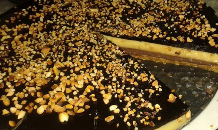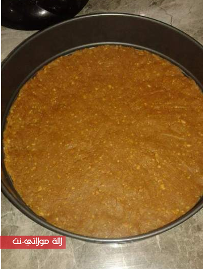 طبقة الأول : بسكويت مهروس مع دانيت كراميل . نعجنو بسكويت بدانيت و نديروه ف المول و ندخلوه التلاجة .