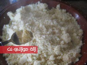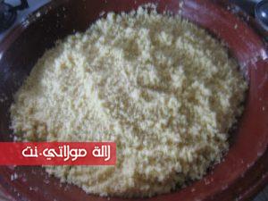 ونعمل الكسكس في الكسكاس فوقه يتبخر ثلات تبخيرات في كل تبخيرة نكبه في قصرية ونرشه بالماء مخلط بشوية الملح في التبخيرة الثانية نعمل الزبيب ونخليوه يطيب بعد التبخيرة الثالتة نعمل في الكسكس ملعقة كبيرة السمن و نبسبسوه عند التقديم نعمل كسكس عاشوراء بالديالة أو القديد لي حضرنا في القصرية.