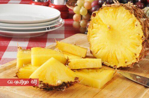 حتوي الأناناس على البروميلين، الذي يحسن الهضم بشكل عام ويعزز وظيفة الأمعاء لطرد الفضلات بسهولة ناهيك عن أنه غني بالألياف الغذائية. من المستحسن استهلاك كوب واحد من الأناناس مع 2 لتر من الماء وسوف تلاحظين الفرق بنفسك.